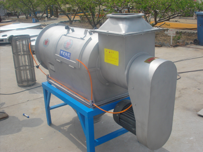 本設(shè)備篩網(wǎng)為圓筒狀,置于機(jī)體內(nèi),物料通過(guò)螺旋輸送系統(tǒng)后,和氣流混合、霧化進(jìn)入網(wǎng)筒內(nèi);通過(guò)網(wǎng)筒內(nèi)風(fēng)輪葉片使物料同時(shí)受離心力和旋風(fēng)推進(jìn)力,從而迫使物料噴射過(guò)網(wǎng),由細(xì)料排出口排出,不能過(guò)網(wǎng)的物料沿筒壁從粗料排出口排出。